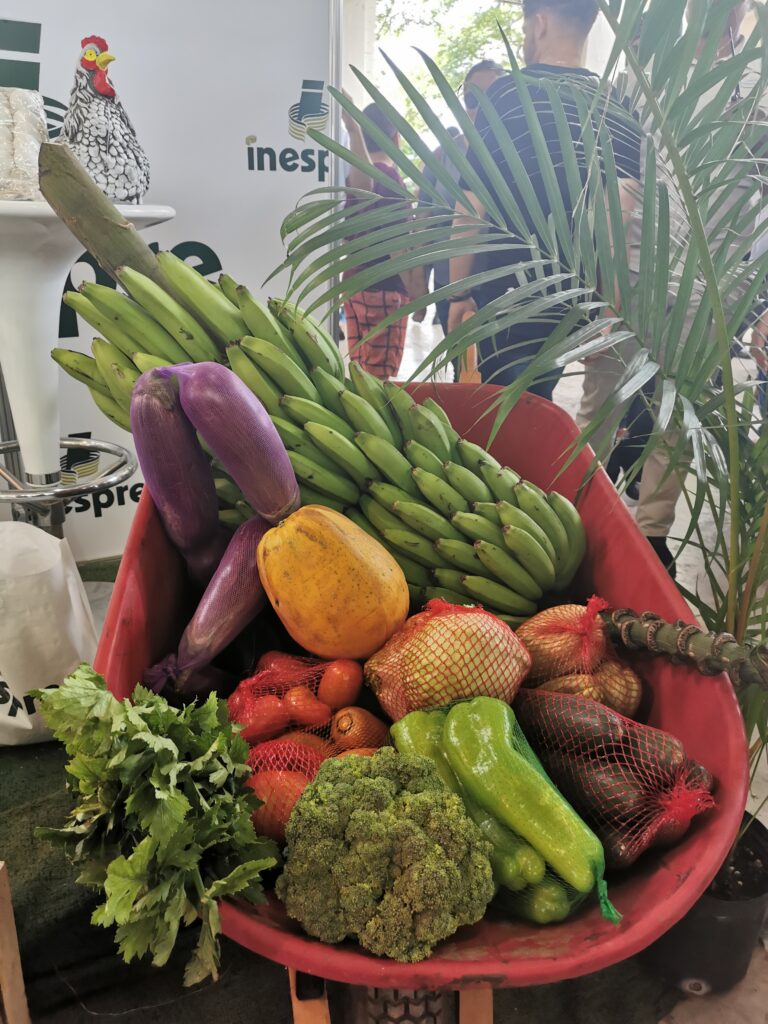 Además, como productos básicos de la canasta familiar se presentó en diversas temáticas los stands conteniendo yuca, yautía, auyama, buen pan, guineítos, chinola, mango, limón, guanábana, lechoza, huevos, especias de sazonar como orégano y pimienta, ajo, cebolla, verduras, otros.