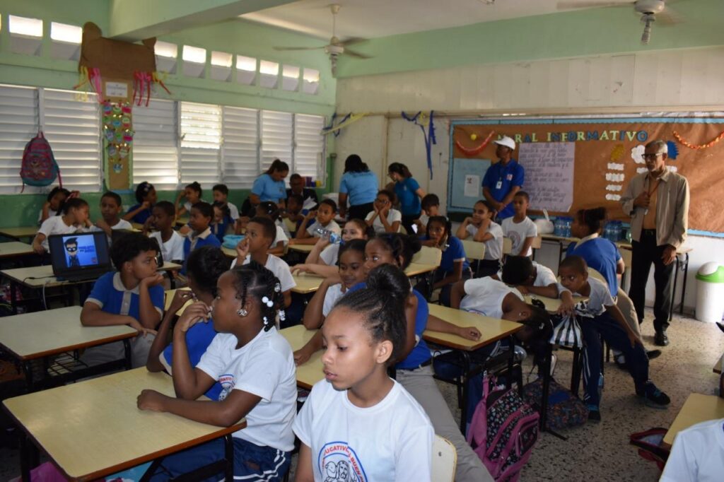 La charla educativa estuvo dirigida por Georgin Cuevas y otros representantes de Gestión Comercial de la CAASD, quienes orientaron a unos 35 estudiantes de cuarto, quinto y sexto grados de educación primaria sobre el uso racional del preciado líquido, cómo proteger los ríos y evitar su contaminación.