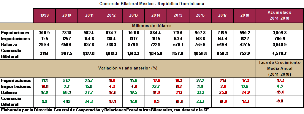 SANTO DOMINGO-. Con nueva directora ejecutiva, la Cámara Binacional de Negocios y Servicios de México y República Dominicana (CABIMEX-RD) tiene por delante el reto de estabilizar la balanza entre ambos países, que al cierre del 2018, cerró con intercambio comercial de US$752.9, 12% menos que el año anterior.