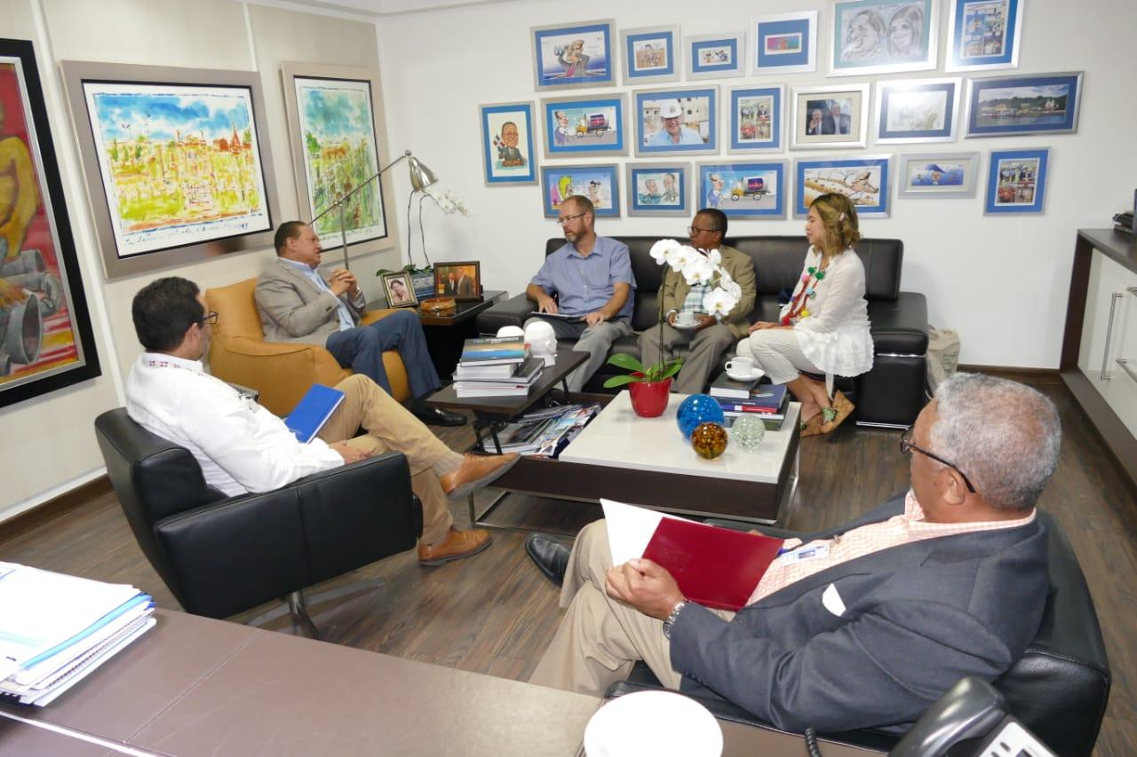 Santo Domingo.- El director general de la Corporación del Acueducto y Alcantarillado de Santo Domingo (CAASD), arquitecto Alejandro Montás, recibió la visita de un auditor del Banco Interamericano de Desarrollo (BID) y de ejecutivos del Fondo Agua Santo Domingo y la organización internacional sin fines de lucro The Nature Conservancy (TNC).