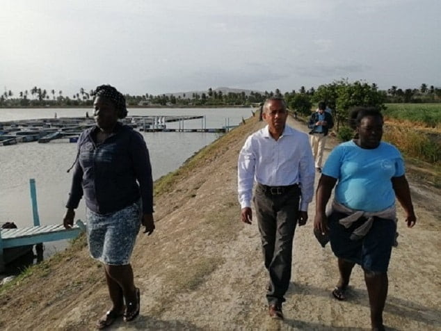 55 mujeres desarrollan en la sección Bombita un proyecto de crianza y producción de tilapias en un lago artificial que se alimenta de agua del rio Yaque del Sur, en el cual se ha desarrollado un único y exitoso proyecto de pesca en jaulas.