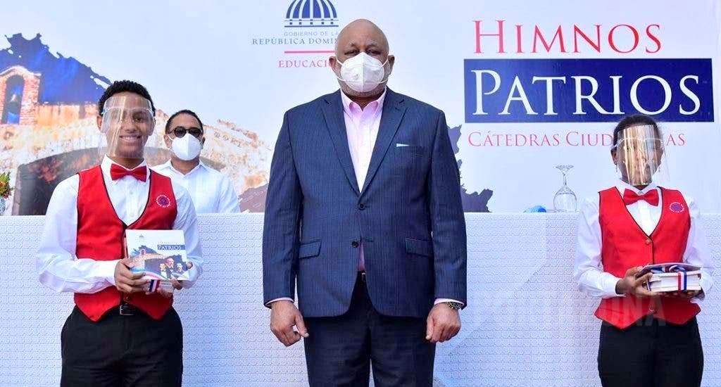 El Ministerio de Educación presentó este viernes las Cátedras Ciudadanas “Patria”. Se trata de una colección de obras que recogen los himnos Nacional, a la Bandera Nacional y a los Padres de la Patria; Juan Pablo Duarte, Matías Ramón Mella y Francisco del Rosario Sánchez.